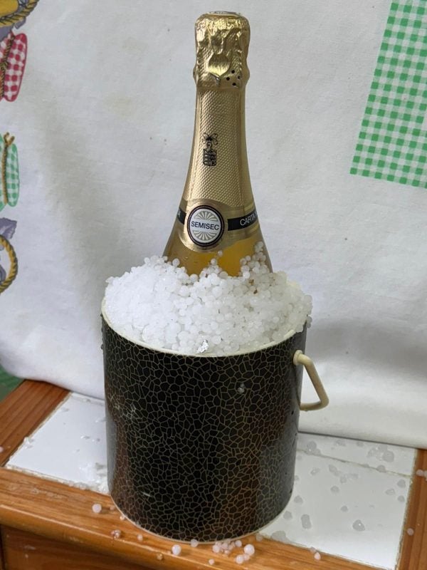 Mi amigo Lui García Marín aprovechó el granizo para enfriar el cava, jijijji. Además, cazó una manga marina.