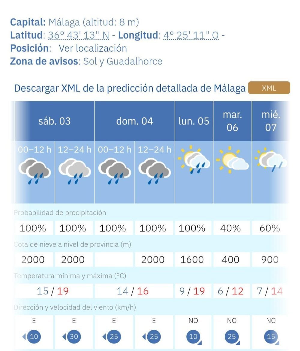 Buenas noches, amigos de la meteo. Como los mensajes me echan humo, solo comentaros que la predicción automática de la Aemet ha cambiado, como era lógico. Y lo mas seguro que mañana también cambie. La probabilidad de que nieve en Málaga capital es muy baja, solo el 2%. Incluso baja la probabilidad de precipitaciones.