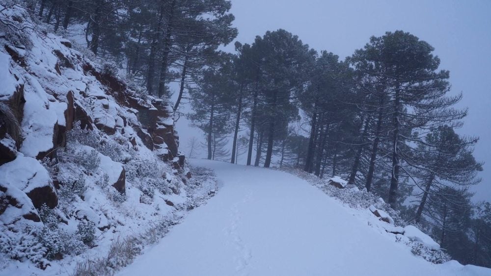 Probablemente de las mayores nevadas que hemos tenido en Sierra Bermeja en la última década, y puedo dar fe porque creo que no he faltado a casi ninguna de las grandes, como atestiguan los vídeos de mi canal. Desde que comencé el paseo en Peñas Blancas a las 7:15, estaba además claro eso, y que la barrera de subida al refugio se tenía que bajar.