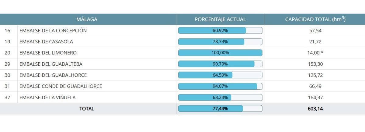 Os pongo el estado de los embalses de Málaga, impresionante.