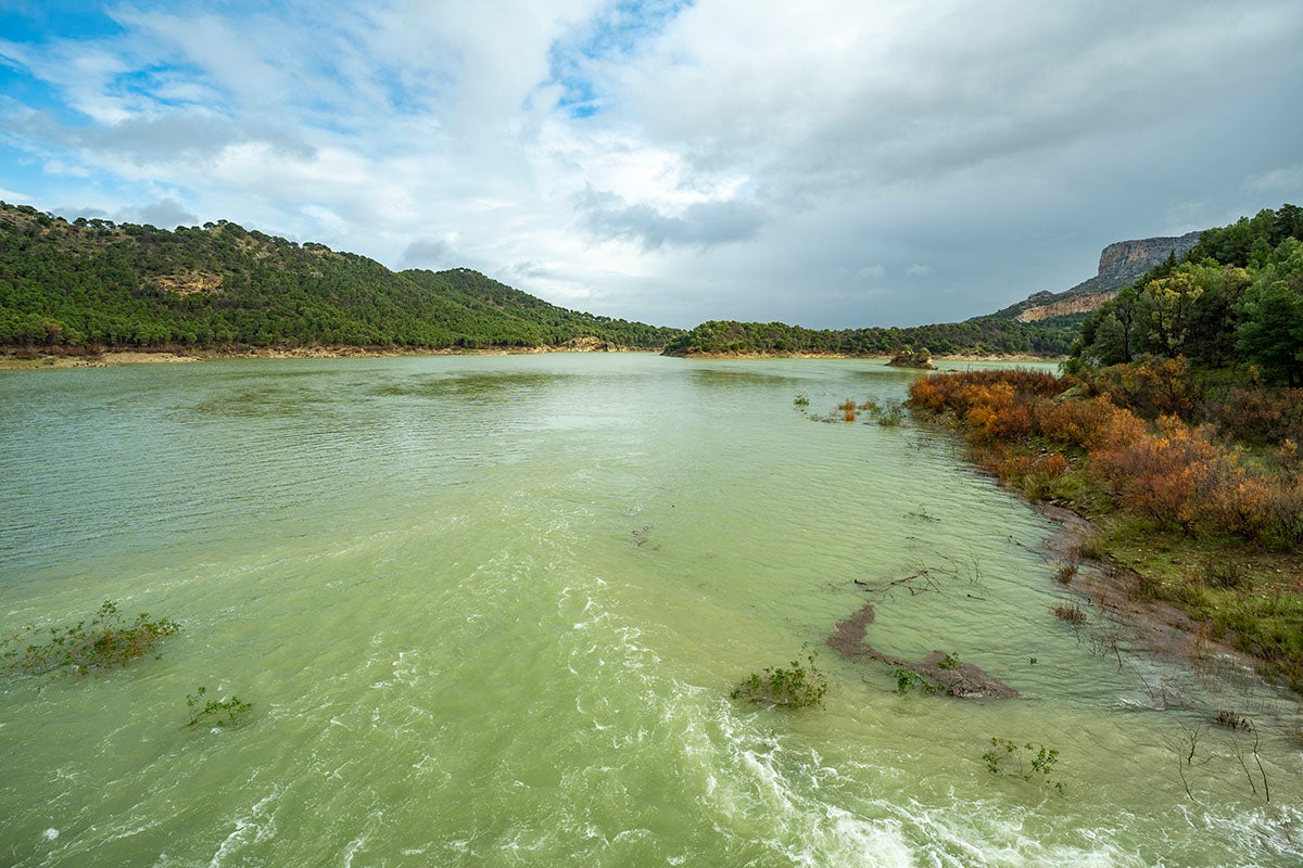 Embalse del Guadalteba desembalsando por el aliviadero de arriba al Guadalhorce
