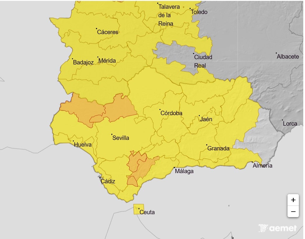 Las ochos provincias andaluzas en avisos amarillo y naranjas por lluvias y viento hoy sábado