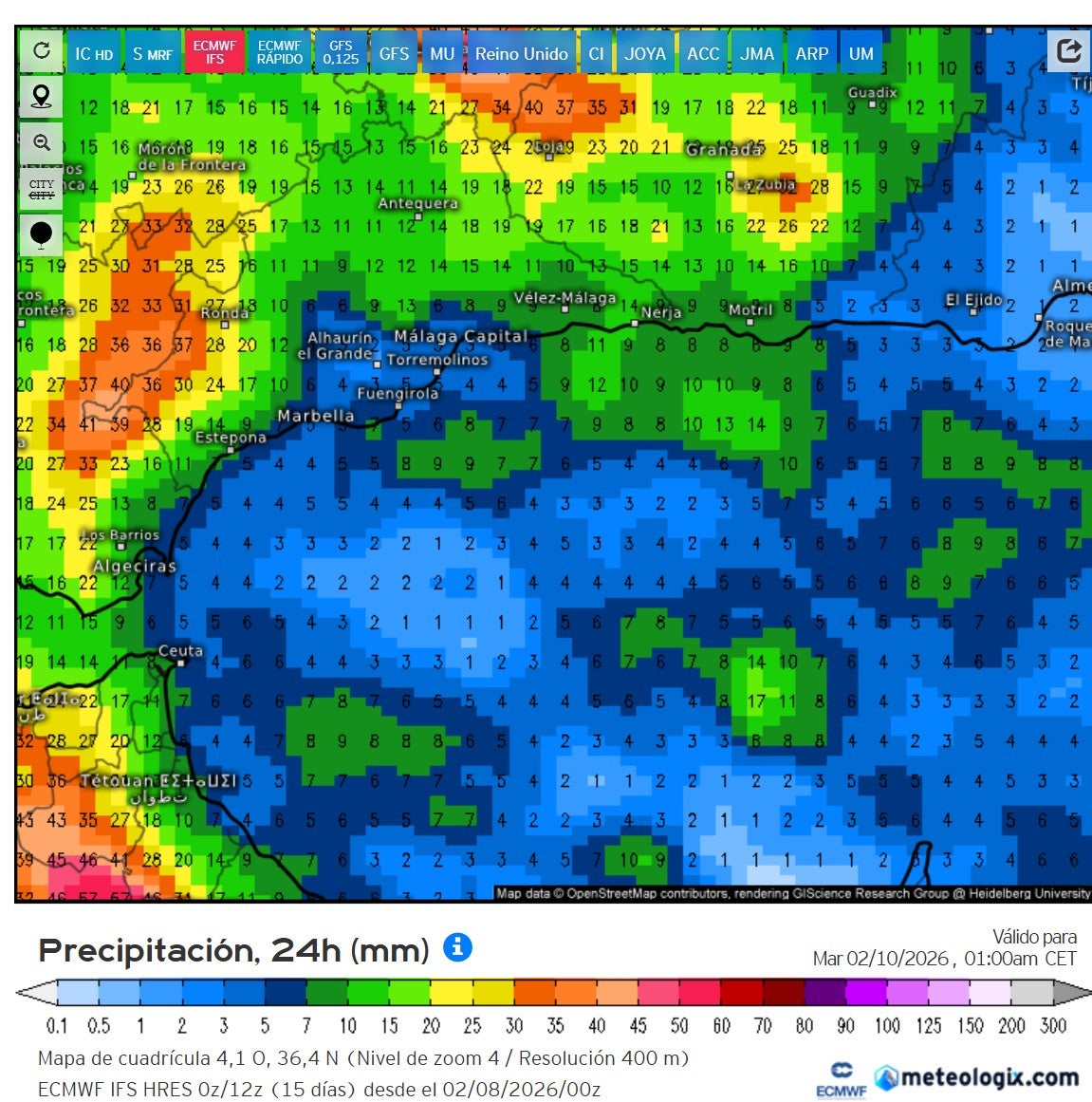 La comarca de Ronda está en aviso amarillo para mañana lunes por precipitación acumulada de 40 mm en 12 horas. Ya veremos si en nuevas actualizaciones ponen algunas zonas más.