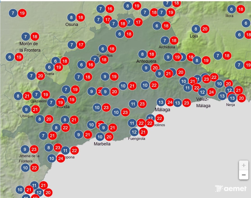 En otras zonas de la provincia malagueña, las temperaturas máximas también estarán por encima de la media.