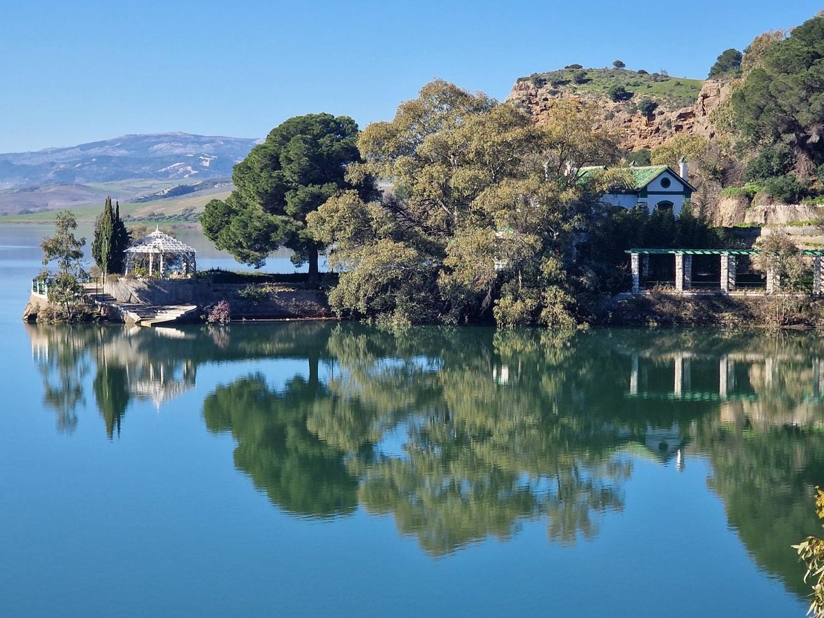 El paso de los trenes de borrascas está dejando imágenes históricas. En este caso, en el sistema de embalses del Guadalhorce. El embalse homónimo y el Guadalteba están conectados por un aliviadero. Cuando este último se llena, cae el agua por gravedad sobre el segundo, un hecho que recogía SUR hace dos semanas. Sin embargo, el crecimiento de ambos embalses tras las lluvias y dado que las escorrentías siguen potentes ha hecho que la lámina de agua sea un continuo, una especie de enorme mar interior con 275 hectómetros cúbicos.