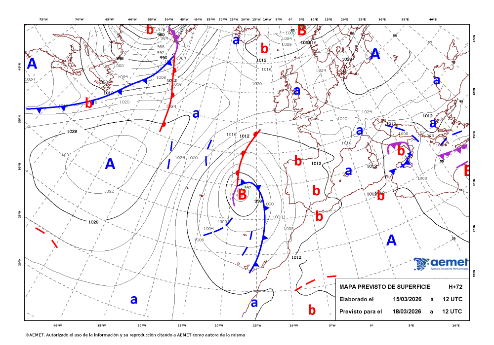 El miercoles entre las Azores y Madeira se formara primeramente una dana con reflejo en altura y a continuación esa misma dana tendra reflejo en altura y superficie formandose una BFA.