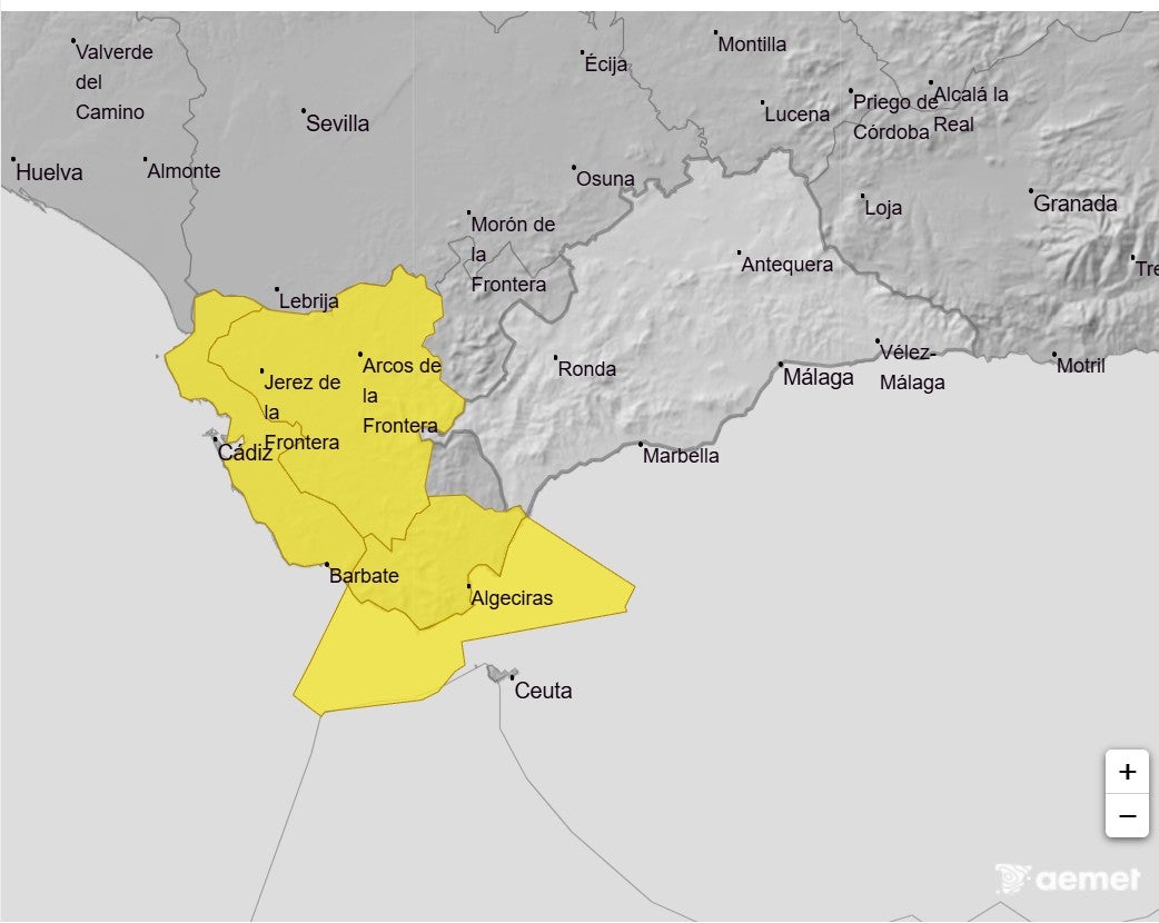 El Estrecho y litoral de Cádiz entran en aviso amarillo por viento de 80 km/h y fenómenos costeros.
