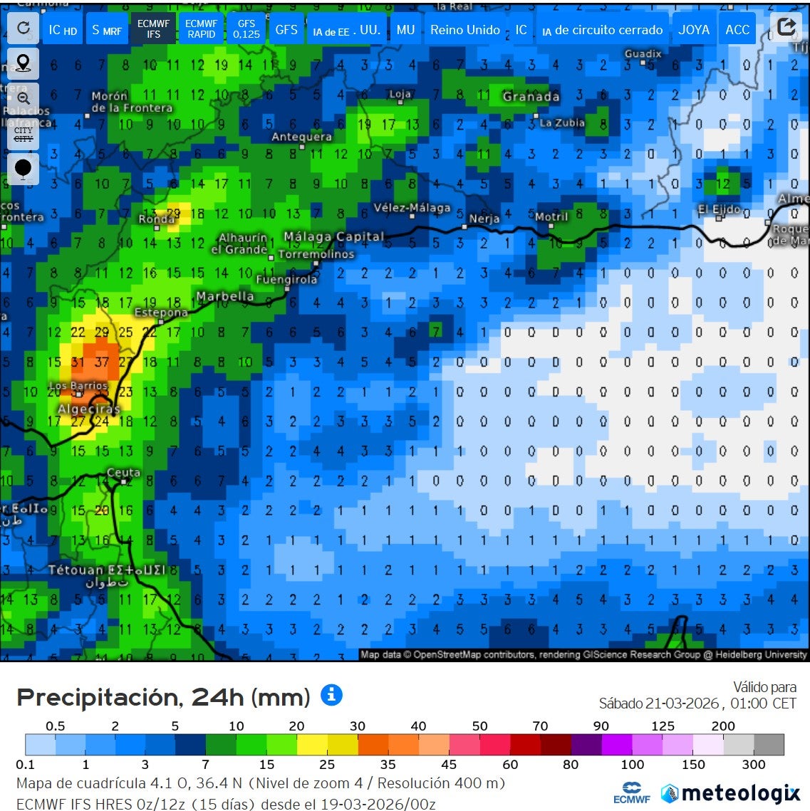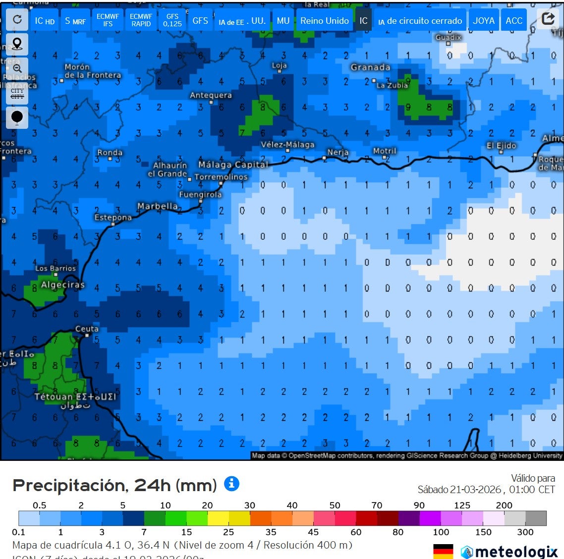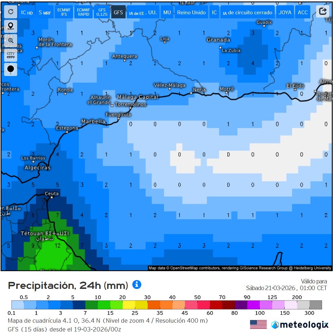 Sobre las diez de la mañana baja la probabilidad en Málaga capital hasta las seis o siete de la tarde.