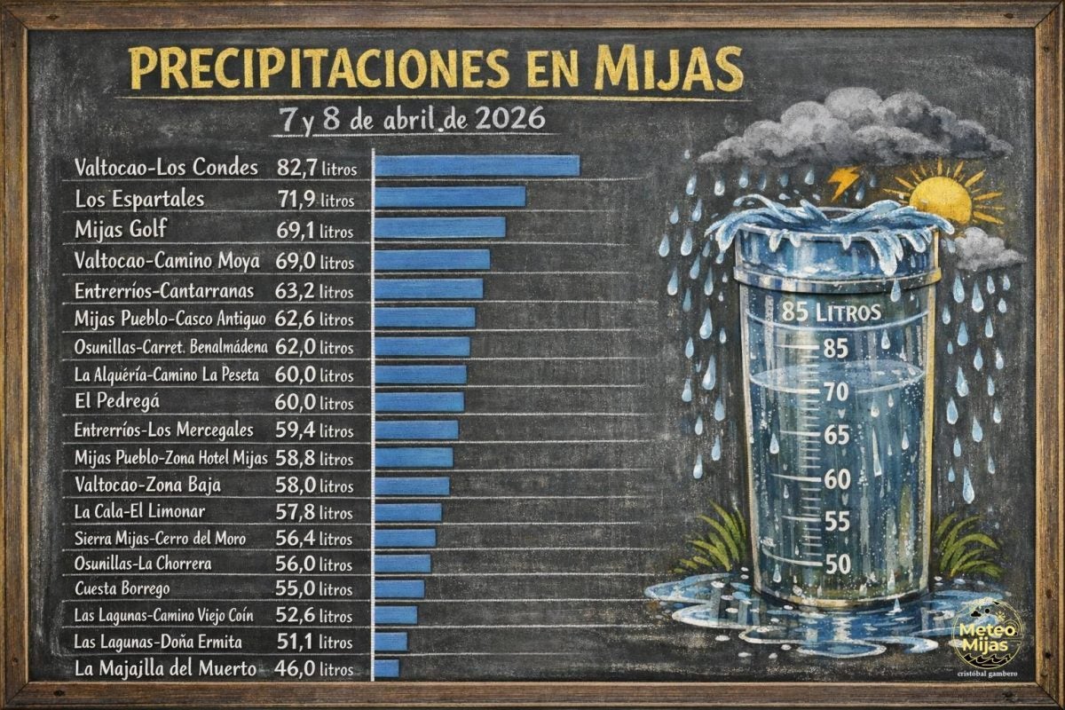 Destacar que ayer nos quedamos a cuatro litros (43,7 mm) de igualar el récord extremo de precipitación en un día el 9 de abril de 2004 con 47.4 mm.