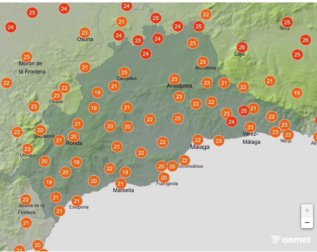 Os pongo las temperaturas máximas y mínimas que prevé la Aemet.