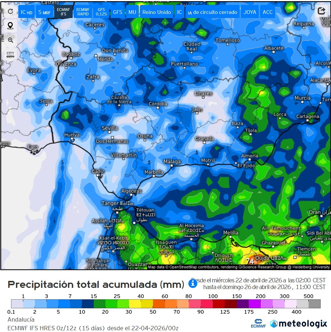 El modelo europeo en su última actualización ha cambiado mucho con lo que daba ayer, sobre todo en acumulados de lluvias. Ahora apenas da precipitación en nuestra comunidad.