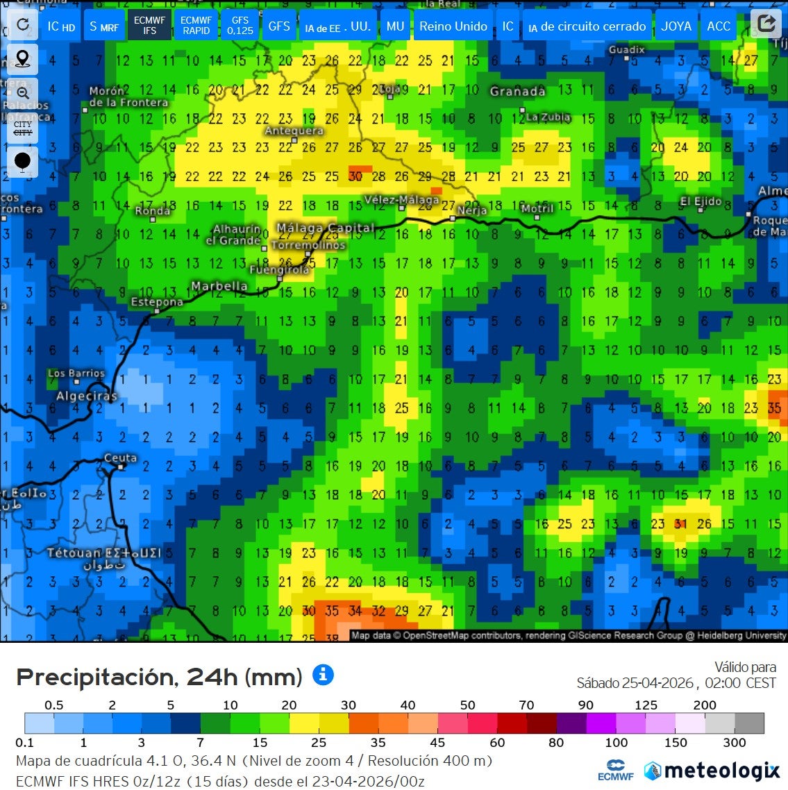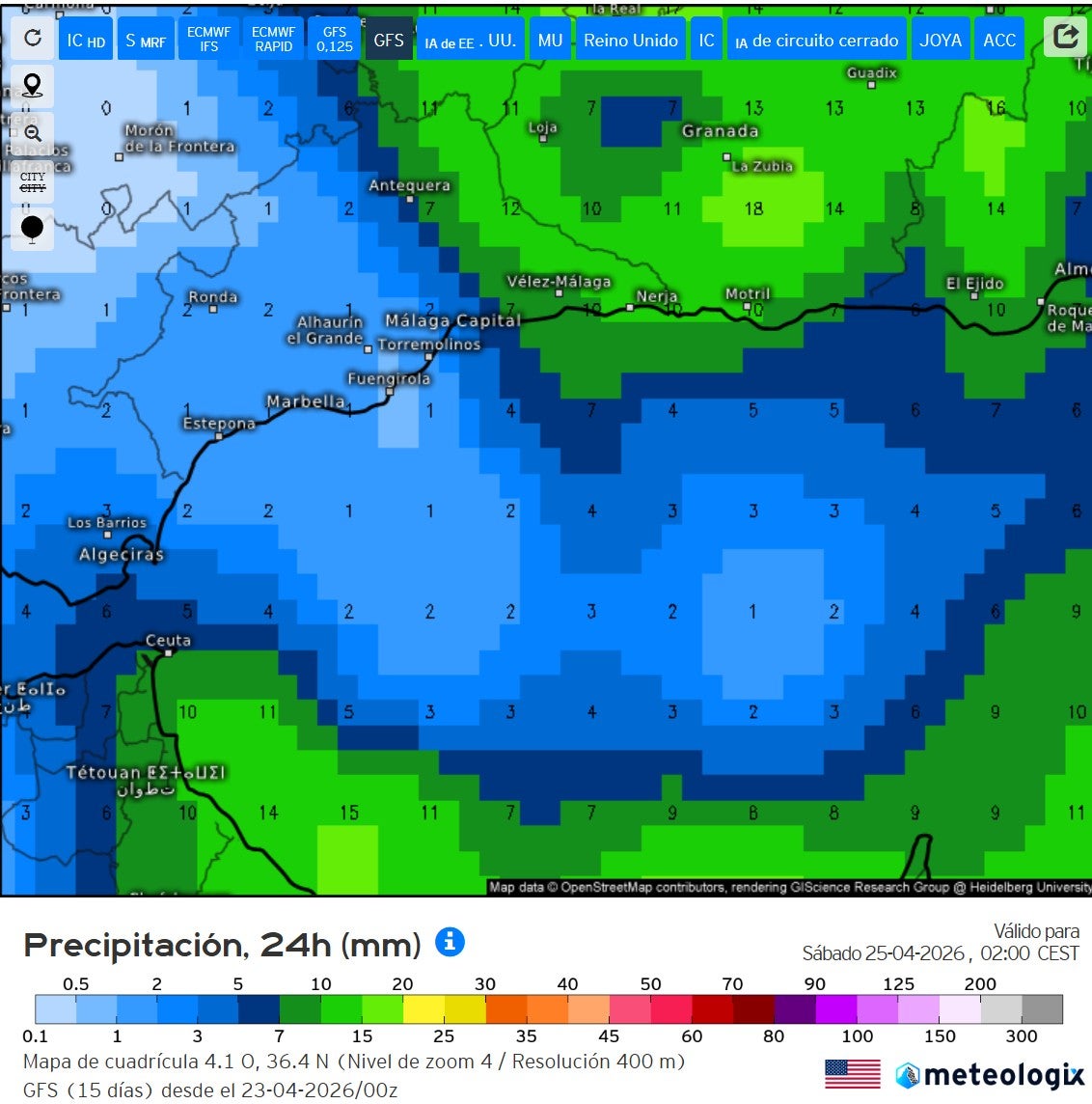 A tan pocas horas, sigue la incertidumbre con las probables precipitaciones acompañadas de tormentas que se esperan para mañana viernes en la provincia de Málaga. En la nueva actualización del europeo da más precipitación; en cambio, ahora el americano da menos.