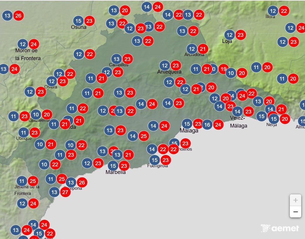 La Aemet prevé estas temperaturas máximas y mínimas.