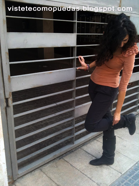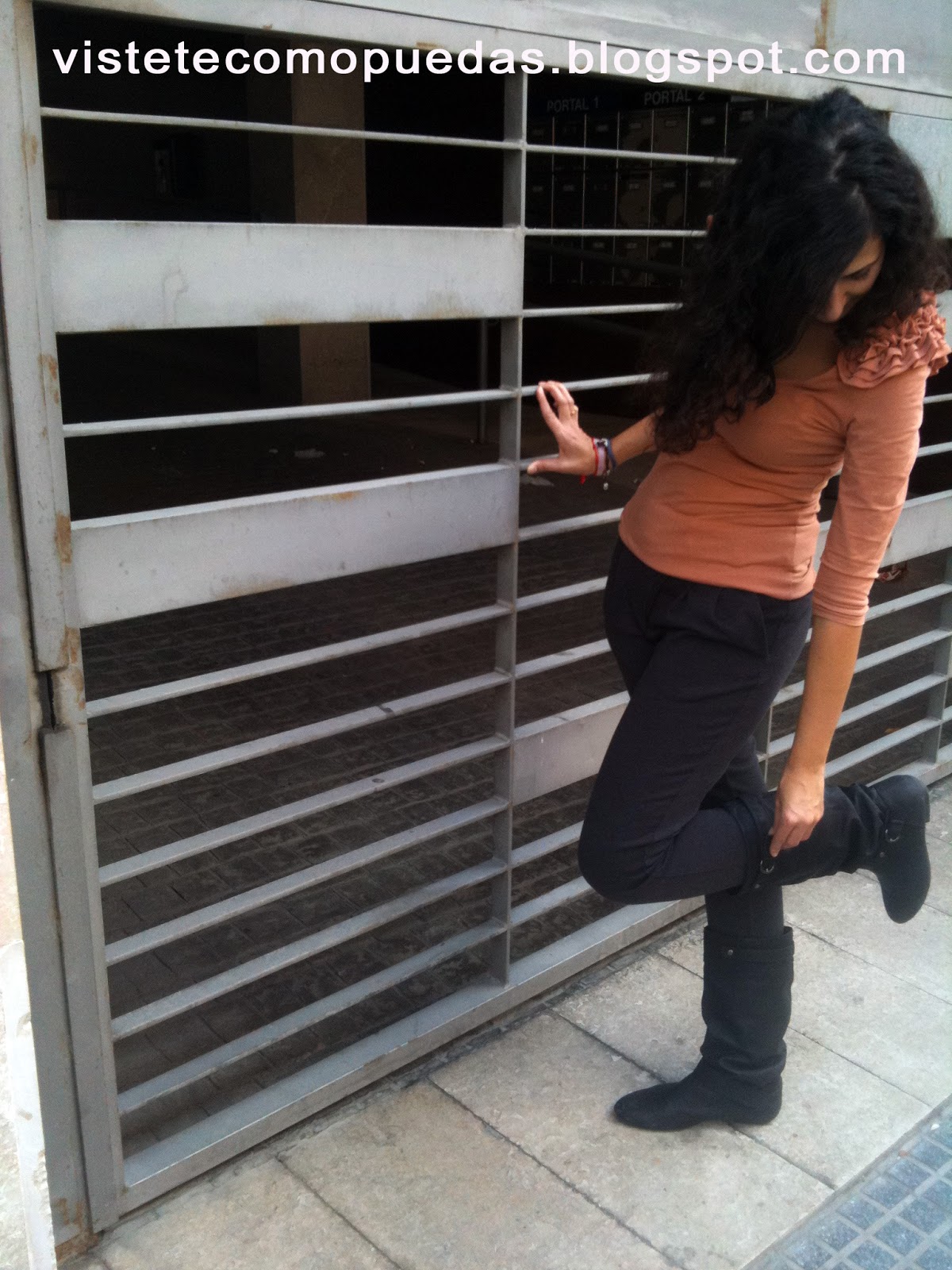 The pants are from Mango and besides being extremely comfortable and the fabric you have, I love the way it has to close. You can see what I say in the next photo. Say that the fabric goes to one side. The pants are too warm and, when alligator clip, I think it’s great to be arranged at the same time comfortable. In this case, how she was dressed for a walk together I have boots, which I showed in Primark, but with heels I think the look could change significantly. The color, you see that is dark gray and I think it was appropriate for a color like the one with the shirt.