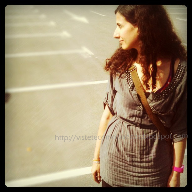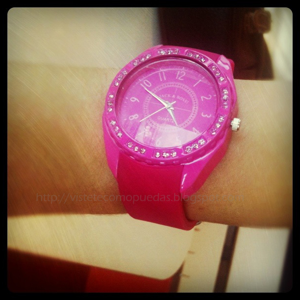Actually, I titled this entry as’ A touch of color “because as you see the outfit is something gray and just a touch of color that gave it my new watch fuchsia. Here you can see it better.