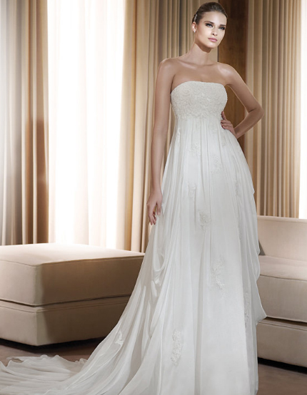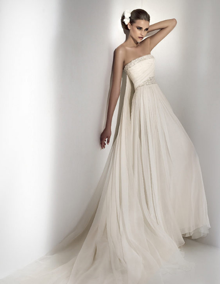 Antes de poneros mis propuestas quiero subrayar precisamente eso, que son los diseños que he escogido de toda la colección 2011, pero hay muchos más. Personalmente me gustan los vestidos de novia sencillos, no obstante, pensando en otros estilos he elegido diseños que quizás yo no me pondría pero que me parecen bonitos. Os hago una pequeña clasificación al tiempo que os cuelgo las imágenes.