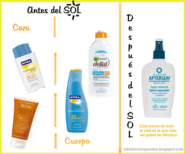 Ponernos morenas está muy bien, pero no olvidemos ser responsables y cocientes de los peligros que tienen los rayos solares sobre nuestra piel. Por eso nunca debemos olvidar aplicarnos protector solar. Da igual la marca, eso sí, como mínimo hay que elegir un protector de 20 (recomendado por los dermatólogos), aunque personalmente prefiero el de 50 SPF.