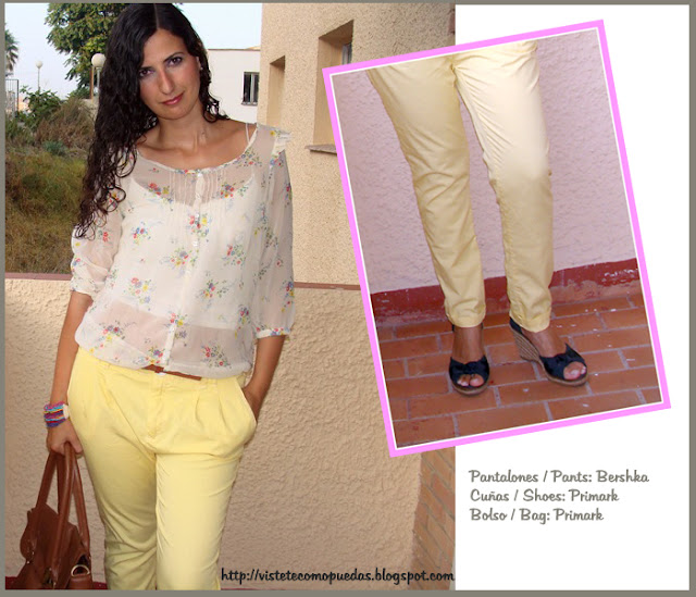 Since I’ve always liked the yellow dress against him as a color that is bad luck (as often seen), he inspires joy and light. On sale I found these pants and decided to take him, but hesitated about what color I chose. I liked the pink suit and pink and this yellow, so finally I decided to take the color you have chosen many years ago without thinking twice. Seems ideal to combine a blouse as sweet as this also bought in at an incredible price reductions (3.99 €). No more I leave you to entertain the images of my first purchases with discounts. And you, how have you been?
