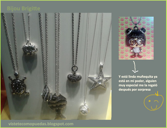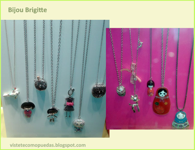 >Útimamente me estoy repitiendo un poco con el tema de los accesorios pero es que el otro día pasé por el escaparate de Bijou Brigitte y no me pude resistir a fotografiar los originales colgantes que había. Hacía tiempo que no me llamaban la atención las cosas de esta tienda (en la que hace años compraba multitud de cosas), pero esta vez me han vuelto a ganar. De hecho, uno de estos collares ya luce en mi cuello -al final os lo muestro-.
