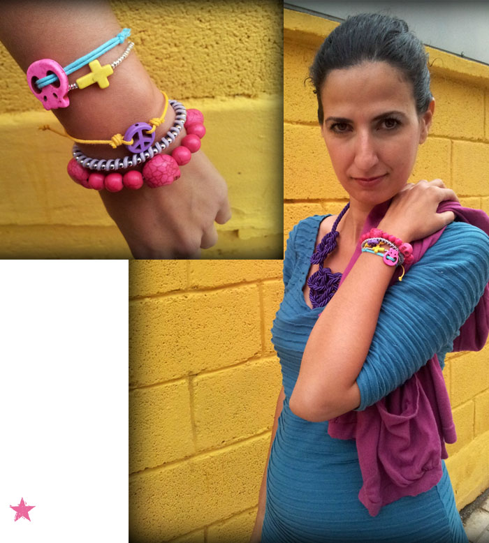 | Lo de que muerda la pulsera tiene una explicación, y es que aunque son calaveras, parecen bolitas de chicle de fresa 🙂 / The bite of the bracelet is because this skulls look like gum balls 🙂 |