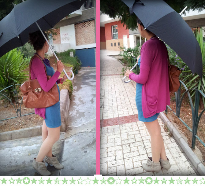 Estos días de lluvia decidí que no me apetecía cubrirme demasiado, que para eso ya contaba con un gran paraguas ☺Así que por fin estrené la ropa que me compré en la